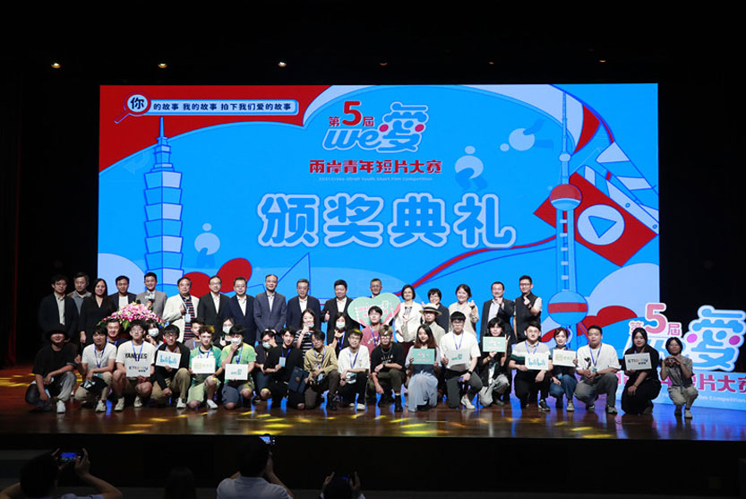 9月25日下午,We愛·第五屆兩岸青年短片大賽頒獎典禮隆重舉行。中共中央台辦、國務院台辦副主任龍明彪,上海市委常委鄭鋼淼,上海市人民政府台灣事務辦公室主任鍾曉敏、副主任王立新,上海市教育委員會副主任李永智,上海市文化和旅遊局副局長金雷,以及本屆大賽指導、主辦、協辦單位和戰略合作夥伴、兩岸影視界人士、本屆大賽入圍青年等出席。頒獎典禮繼續採用視頻雲聯機的方式在滬台兩地同步舉行。