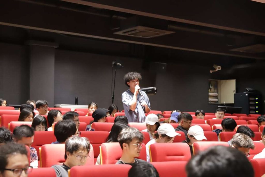 隨後王澤宇導演進行他的分享。他認為,自己雖是北電畢業,但更像一個上電的學生,在上電舉辦的活動中孵化出他的兩部作品。他希望營員們能好好享受這一周的創作過程,享受創作的激情和機會。